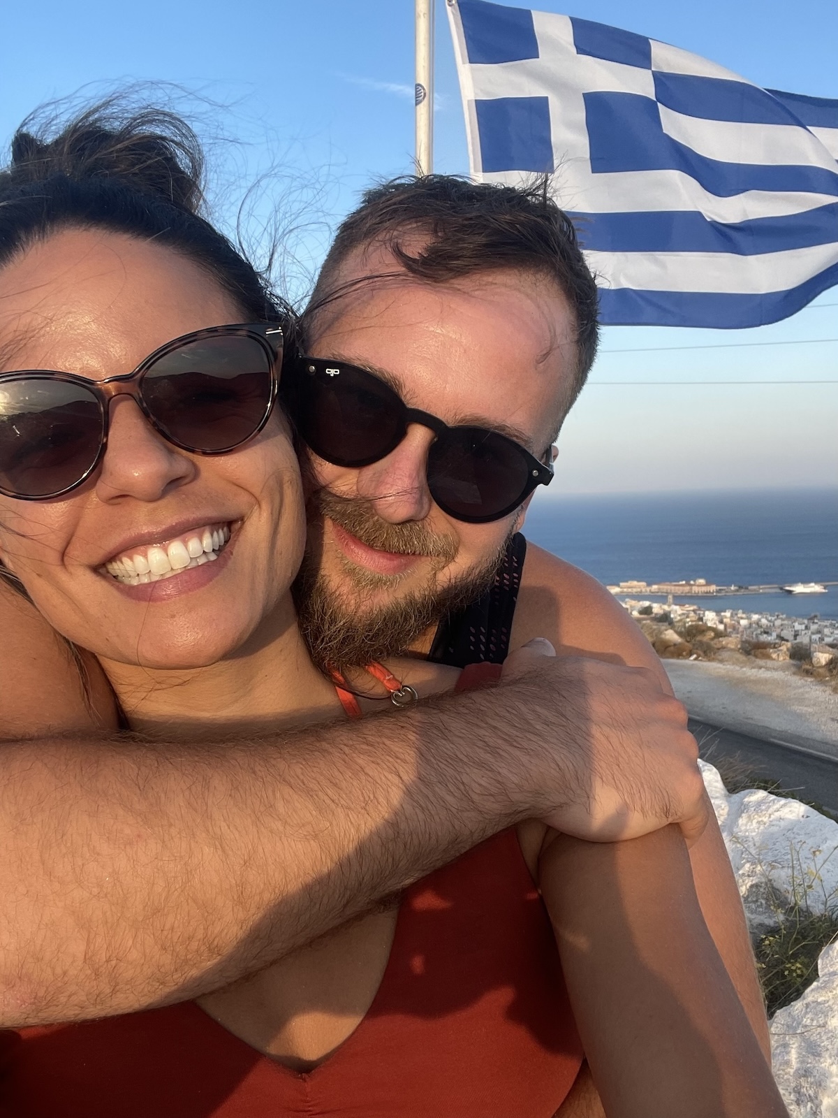 We are Alex & Kat! Alex is Greek born and raised in Athens. Kat is Greek-American born and raised in California. They met while Kat was on vacation visiting her family in Greece in 2014. They spent 3 years between Greece and California then in 2017 Alex moved to California. After 5.5 years living together in the States, they relocated back to Greece in March 2023. Kat is building her boutique retreat & travel company, Eyia Retreats. We love sharing Greece with all of you! Over the last year, Kat has received many questions and requests on specifics on the move so we decided to make this course to support those of you who are dreamers like us or already know you're making the move and want to have a smoother transition!